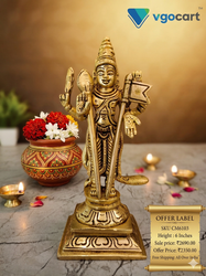 The Brass Lord Murugan idol available on VgoCart is a masterpiece of intricate design and exquisite craftsmanship. Each detail, from the divine facial expression to the elaborate ornamentation, is meticulously hand-carved by skilled artisans. This stunning idol features a luxurious golden antique finish, adding an aura of timeless elegance and spiritual grandeur to any space.