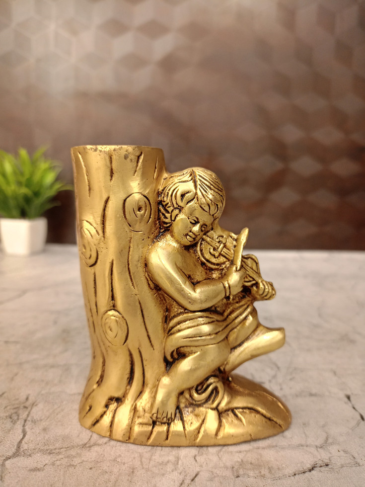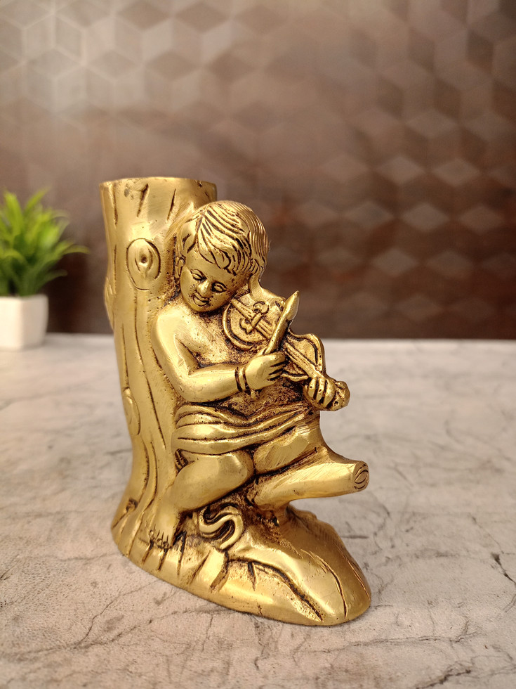 Elevate your workspace with VgoCart's Brass Pen Stand With Music Babe 4.5", a beautifully crafted handicraft antique home decor piece. This brass pen stand showcases intricate detailing and represents a perfect blend of functionality and art, adding a touch of elegance to your desk.